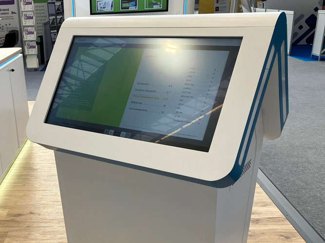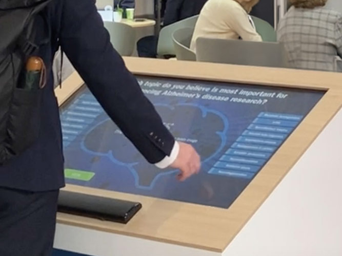 2 touchscreens allow users to add to the word cloud displayed on the large overhead LED screens.