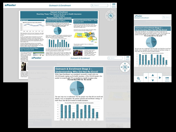 Eye catching poster, allowing viewer to touch to zoom into active content, videos, PDFs, data and audio.